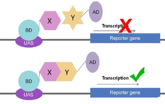 酵母雙雜交系統(tǒng),又稱蛋白阱捕獲系統(tǒng),是由Fields和 Song等人根據(jù)真核轉(zhuǎn)錄調(diào)控的特點創(chuàng)建的。利用酵母雙雜交系統(tǒng)能夠快速、直接分析已知蛋白之間的相互作用,并能尋找、分離與已知蛋白相互作用的配體,在研究抗原和抗體相互作用、發(fā)現(xiàn)新的蛋白質(zhì)和發(fā)現(xiàn)蛋白質(zhì)的新功能、篩選藥物作用位點及藥物對蛋白互作影響、建立基因組蛋白連鎖圖等方面應用廣泛。