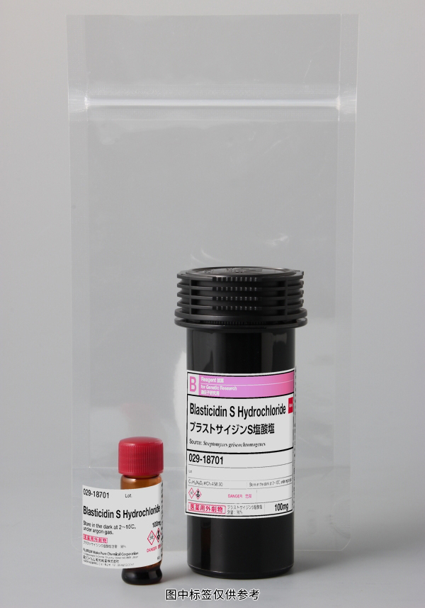 滅瘟素是一種作用于原核生物和真核生物的核苷類抗生素,可抑制原核生物和真核生物的蛋白質(zhì)合成。 在基因工程研究中,滅瘟素S可用于篩選攜帶bsr或bsd抗性基因的大腸桿菌或哺乳動物細胞的轉(zhuǎn)染細胞。