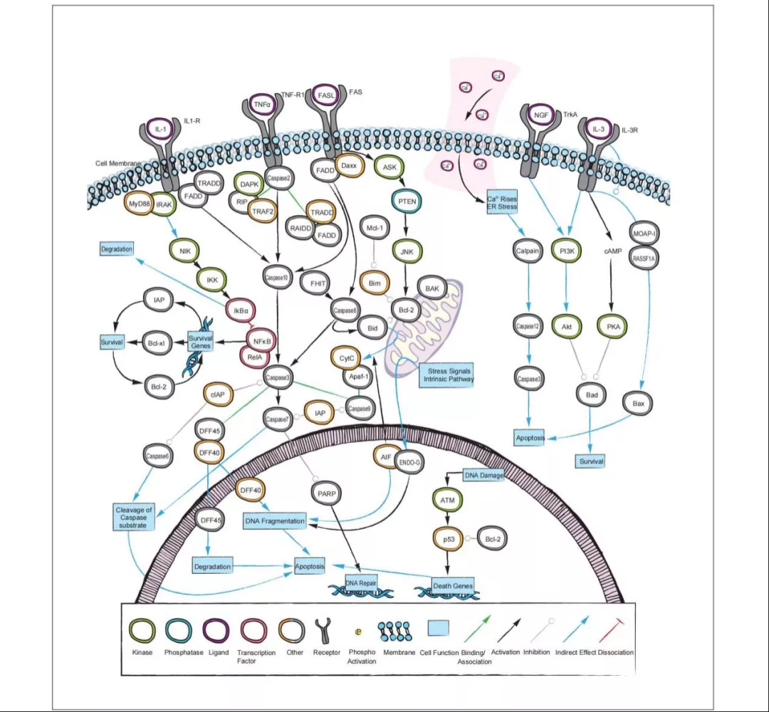 細(xì)胞凋亡(Apoptosis),又稱程序性細(xì)胞死亡(Programmed Cell Death),是指為維持內(nèi)環(huán)境穩(wěn)定,由基因控制的細(xì)胞自主的有序性死亡,它涉及一系列的基因的激活、表達(dá)以及調(diào)控等作用。